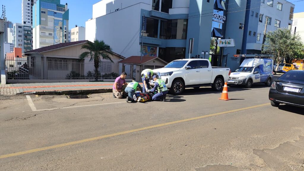 VÍDEO: Acidente entre moto e carro deixa homem ferido em Chapecó