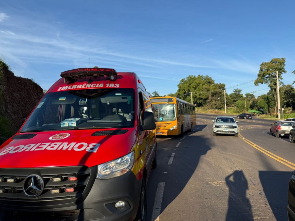 De acordo com as informações apuradas, o coletivo teria acessado a via e cortado a preferência da motocicleta, que seguia no sentido aeroporto–Efapi, provocando a colisão.