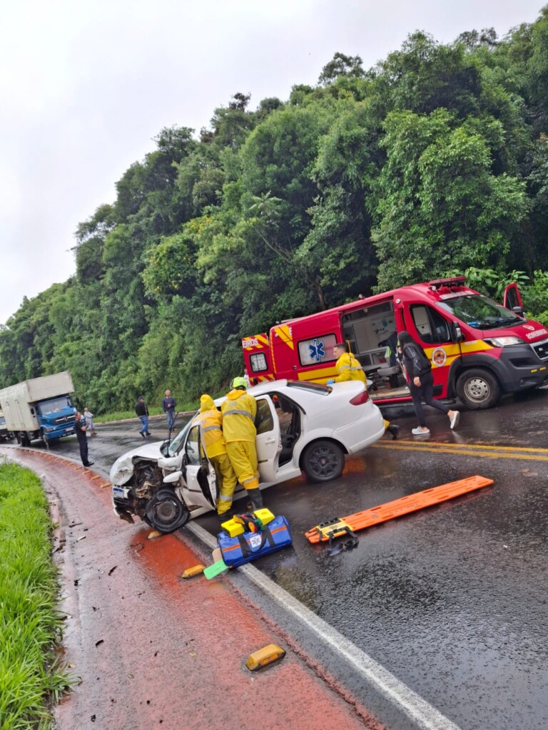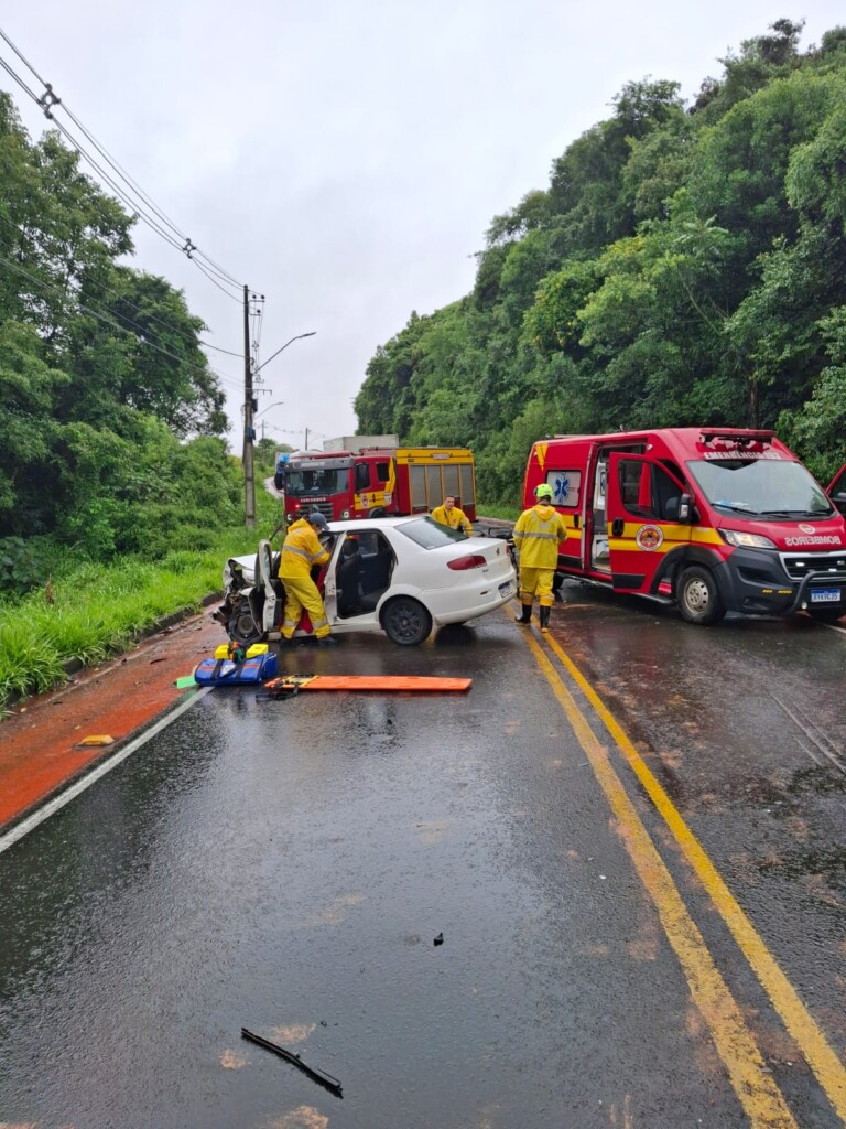 De acordo com as equipes do Samu e do Corpo de Bombeiros, uma das vítimas precisou ser retirada das ferragens. Outras duas foram encaminhadas pelo Samu ao Hospital Regional do Oeste. Até o momento, não há informações confirmadas sobre a dinâmica do acidente nem sobre a gravidade dos ferimentos.