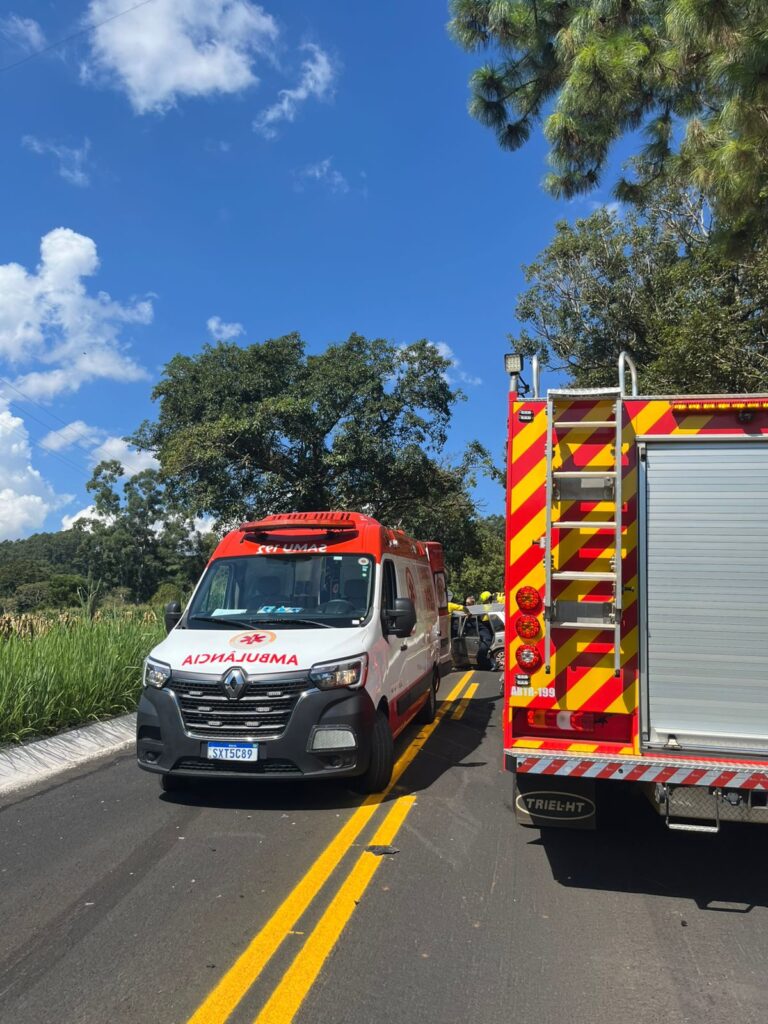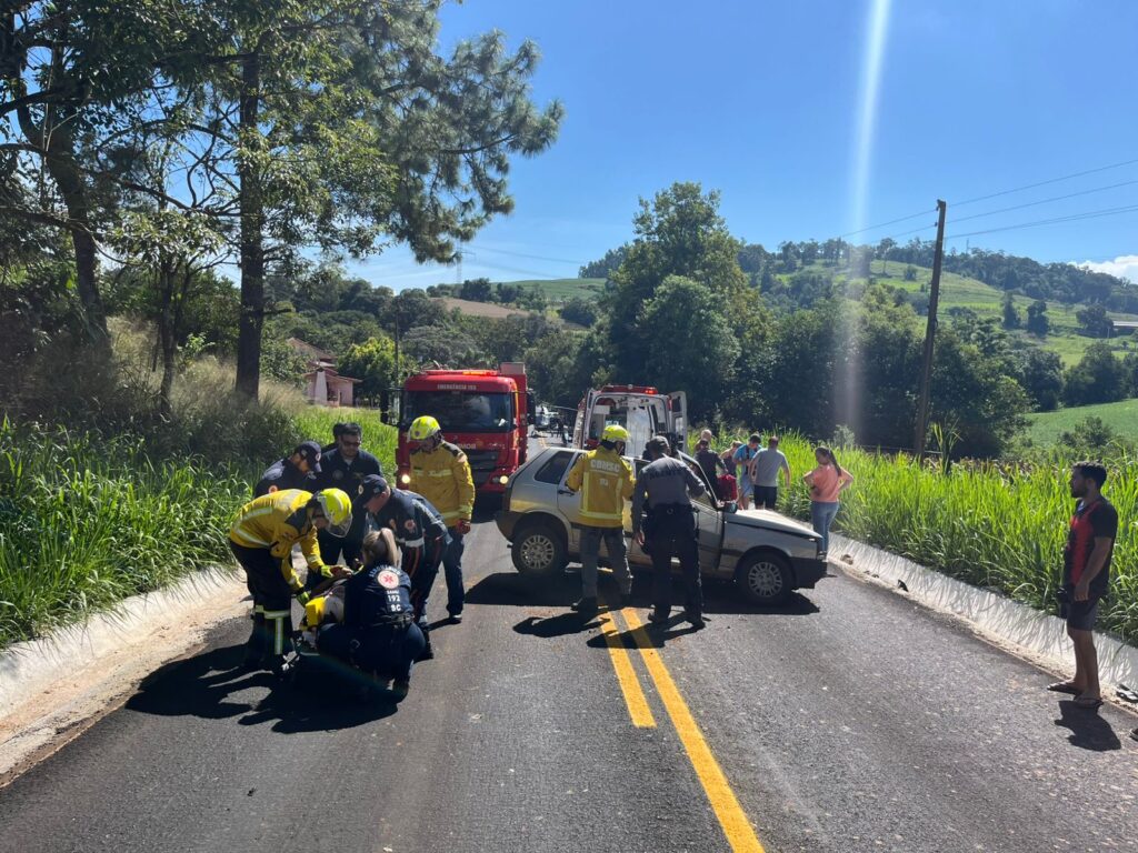 A ocorrência foi registrada por volta das 13h40, na localidade de Linha Gavião, e envolveu uma colisão frontal seguida de capotamento entre dois veículos de passeio. No local, havia aproximadamente três vítimas, sendo uma delas presa às ferragens.