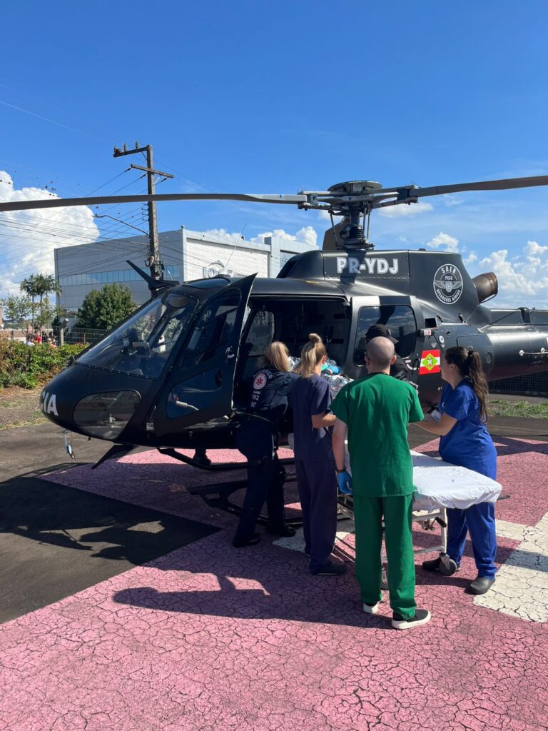 O paciente recebeu atendimento avançado, foi estabilizado no local e, na sequência, encaminhado ao Hospital Regional do Oeste por meio da aeronave do SAER/Fron, sem intercorrências durante o transporte.