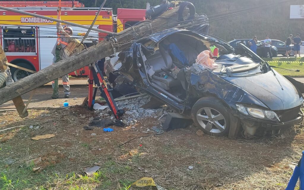 Veículo colidiu com poste de concreto após sair da pista; condutor foi resgatado das ferragens e levado de helicóptero ao Hospital Regional do Oeste
