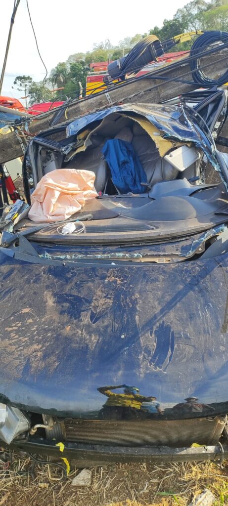 Após procedimentos de desencarceramento, o homem foi extraído, reavaliado e, em seguida, transportado de helicóptero ao Hospital Regional do Oeste (HRO). A equipe da USA 01 do Samu prestou apoio no local. A Celesc foi acionada para cuidados com a rede elétrica danificada, e a cena ficou sob responsabilidade da Polícia Rodoviária Federal.