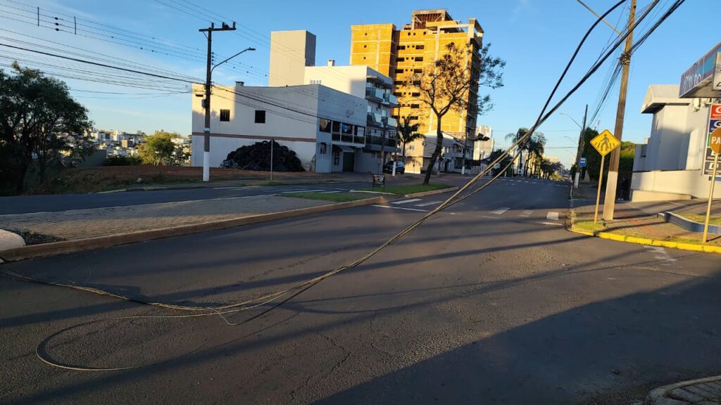 De acordo com informações apuradas no local, o veículo atingiu os cabos ao passar pela via, derrubando parte da fiação. Até o fechamento desta matéria, os fios permaneciam sobre a pista, representando risco aos motoristas e pedestres que transitavam pela região.