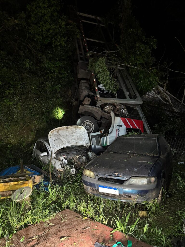 Após o atendimento, a área foi isolada com fita zebrada, tanto no local do impacto quanto na via acima, por onde o caminhão trafegava antes de sair da pista. A ocorrência contou com o apoio da Polícia Militar e da Celesc para a segurança da cena e restabelecimento dos serviços.