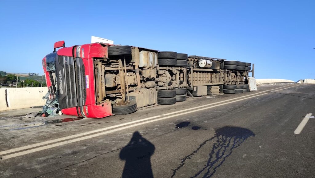 VÍDEO: Caminhão perde o controle e tomba no elevado em Chapecó