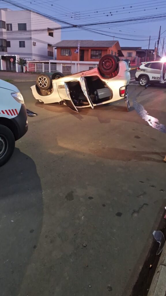 No início da manhã deste sábado (01), um acidente foi registrado na Rua Maravilha, no bairro Efapi em Chapecó-SC. Dois veículos colidiram, e no momento da colisão, um deles capotou.