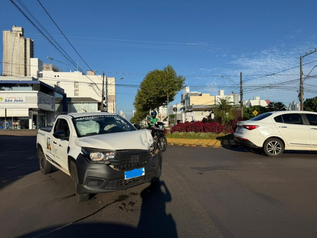 Um acidente de trânsito envolvendo dois veículos foi registrado na manhã desta quarta-feira (18), por volta das 7h40, na rótula entre as ruas Marechal Deodoro da Fonseca e Assis Brasil, no bairro Maria Goretti, em Chapecó.