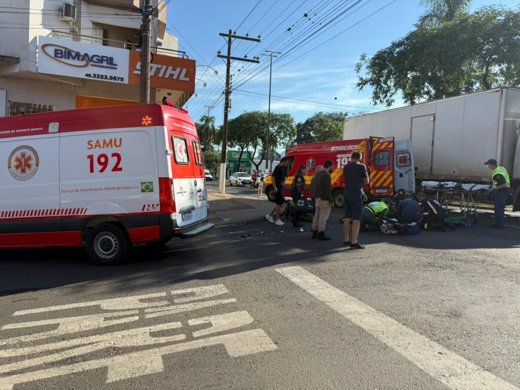 De acordo com informações apuradas no local, o acidente envolveu um caminhão de carga e uma motocicleta. O caminhão seguia pela avenida no sentido Centro–shopping e, ao tentar realizar uma conversão à esquerda, acabou atingindo a moto, que colidiu na parte traseira do veículo.