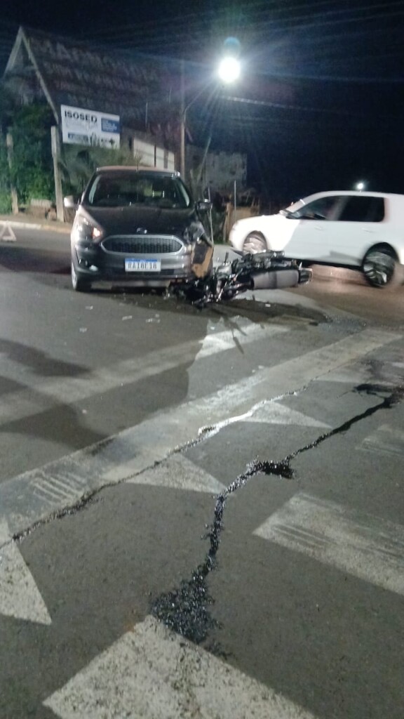 As informações preliminares apontam que o automóvel teria cortado a preferencial da moto, resultando no impacto. As circunstâncias do acidente deverão ser apuradas.