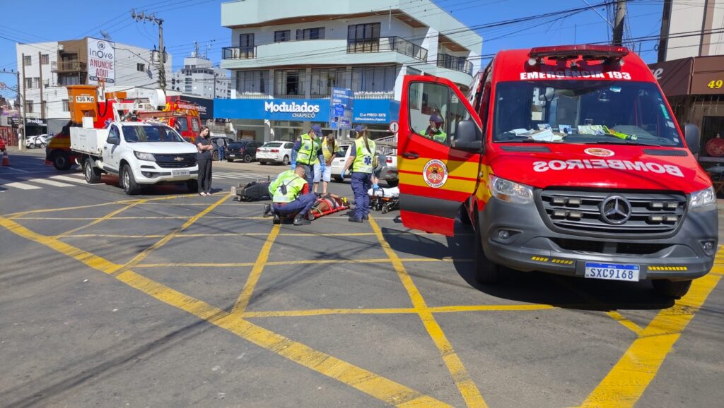 Uma colisão envolvendo uma motocicleta Honda CG 160 e um Volkswagen Jetta foi registrada por volta das 9h15 da manhã desta quarta-feira (17), na Avenida São Pedro, no bairro São Cristóvão, em Chapecó, no Oeste de Santa Catarina. O acidente ocorreu em frente à Doce Pão Lancheria e Panificadora.