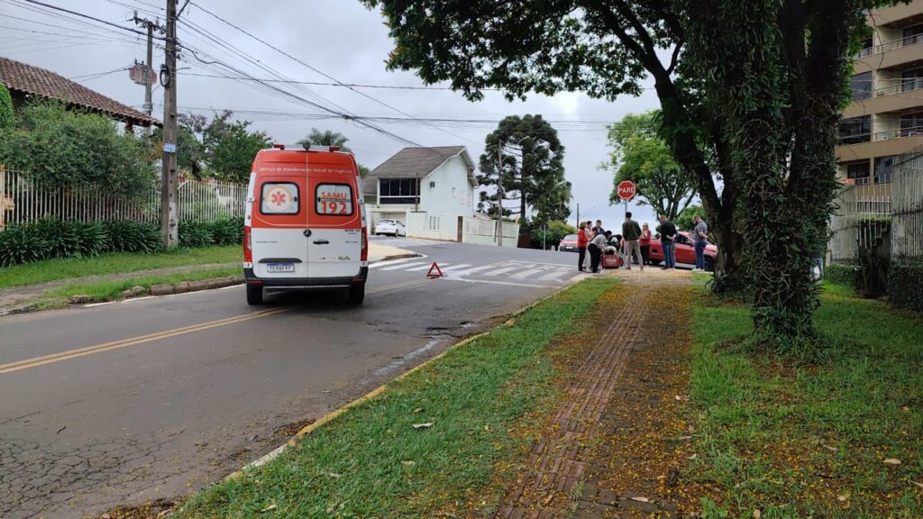 Uma colisão entre veículos foi registrada por volta das 12h25 na Rua Uruguai, esquina com Antônio Morandini, no bairro Saic, em Chapecó.