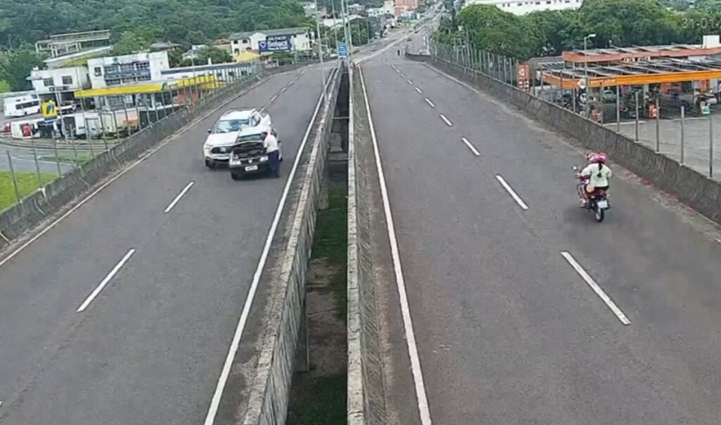 Enquanto realizava o procedimento, o homem foi atingido por uma caminhonete Fiat Toro que trafegava pela mesma via. Com o impacto, a vítima bateu a cabeça na mureta de proteção e foi arremessada de cima do viaduto, caindo na parte inferior da rodovia.