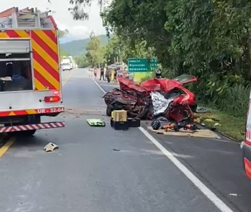 Um homem morreu e outras duas pessoas ficaram feridas em um grave acidente registrado no fim da tarde desta quinta-feira (19), no km 85 da BR-470, em Rodeio, no Vale do Itajaí, em Santa Catarina. A colisão envolveu um automóvel Gol e uma carreta, deixando o trânsito completamente bloqueado nos dois sentidos da rodovia, no trecho entre Ascurra e Indaial.