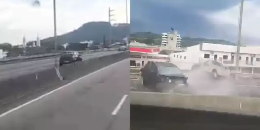 Durante o percurso, alguns caminhões conseguiram desviar para evitar a colisão, mas o Palio acabou atingindo lateralmente um Peugeot, conduzido por um homem de 31 anos, que sofreu ferimentos leves. Na sequência, o veículo colidiu frontalmente com um Ford Fiesta, cujo motorista de 60 anos ficou preso às ferragens e foi resgatado em estado gravíssimo.