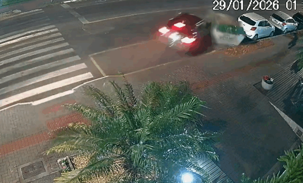 Imagens registradas por câmeras de monitoramento mostram o momento exato de uma grave colisão ocorrida na madrugada desta quinta-feira (29), em Chapecó, no Oeste de Santa Catarina. O acidente foi registrado por volta da 1h30, na esquina das ruas Marechal Deodoro com a Condá, nas proximidades do Posto Mega.
