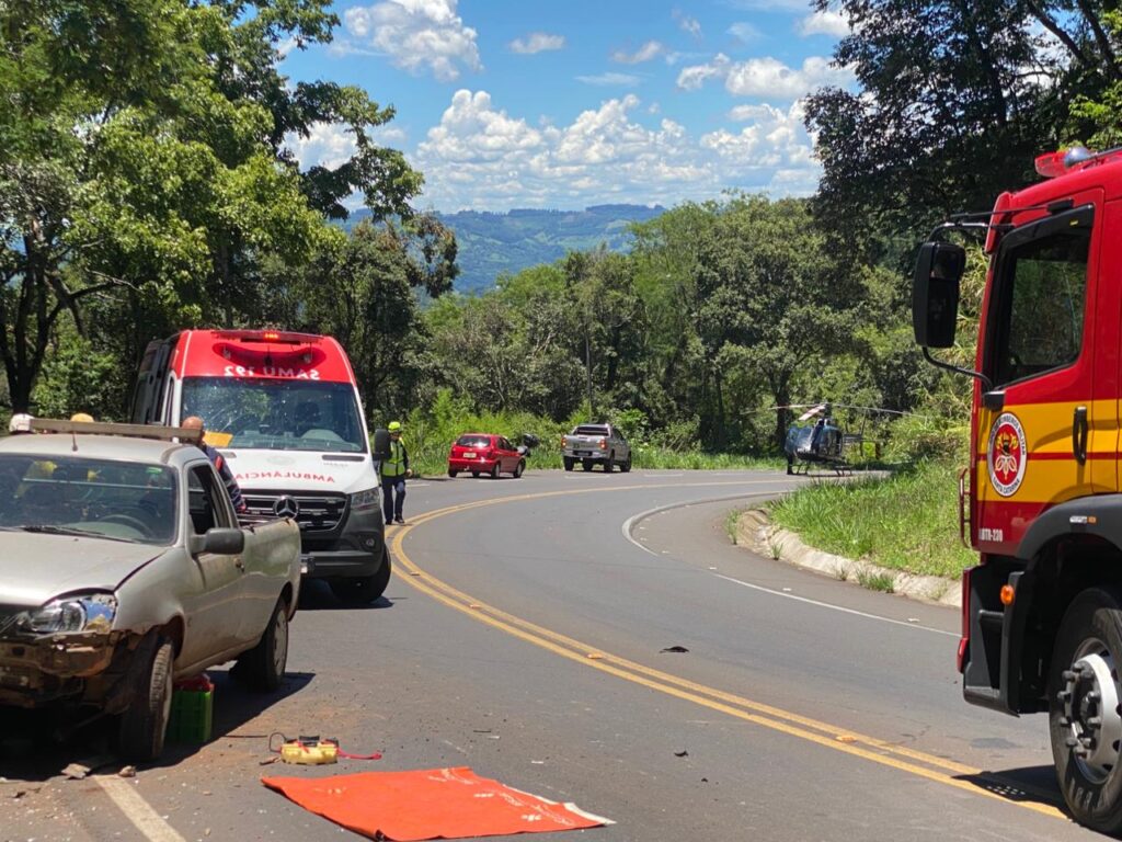 Um grave acidente de trânsito mobilizou equipes aéreas e terrestres na SC-283, em Chapecó, no Oeste de Santa Catarina. A ocorrência envolveu uma camionete e uma motocicleta, nas proximidades da ponte do Rio Irani, e deixou um jovem de 18 anos gravemente ferido.