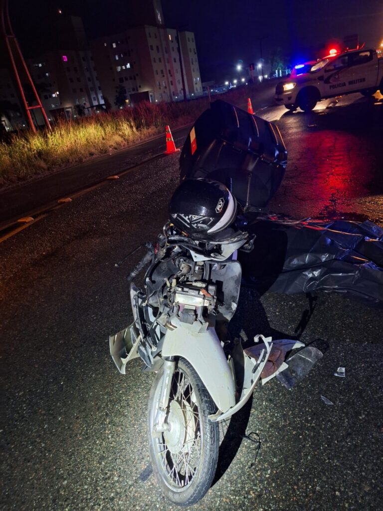 O local estava iluminado, com ampla sinalização e velocidade regulamentada de 40 km/h. A cena não apresentava alterações quando a guarnição chegou, apenas a vítima já coberta por uma lona. Não havia testemunhas presenciais, mas o sistema de monitoramento do condomínio registrou o momento do acidente e as imagens foram encaminhadas à equipe policial.