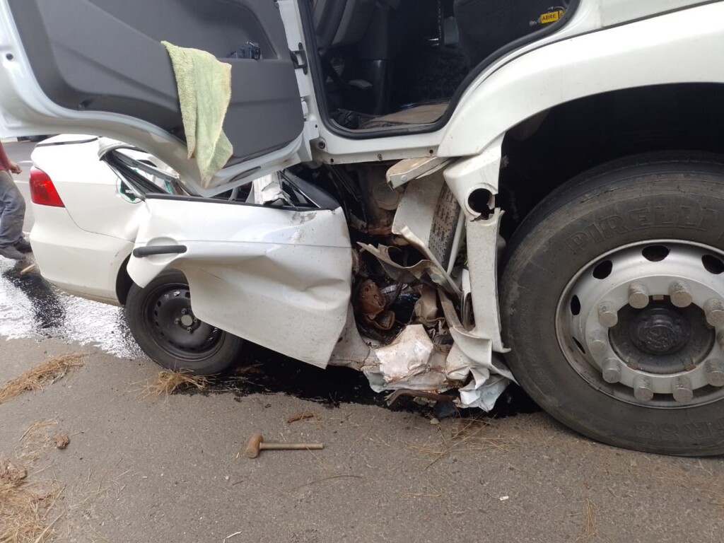 De acordo com informações preliminares, o autor do crime foi identificado como um homem, de 48 anos, ex-marido da vítima. Após efetuar os disparos dentro da residência, ele fugiu em um VW Voyage branco em direção à BR-153. Durante a fuga, ao chegar ao viaduto de acesso à cidade, conhecido como Trevo da GR, o autor colidiu propositalmente o veículo contra um caminhão que trafegava pela rodovia, morrendo no local.