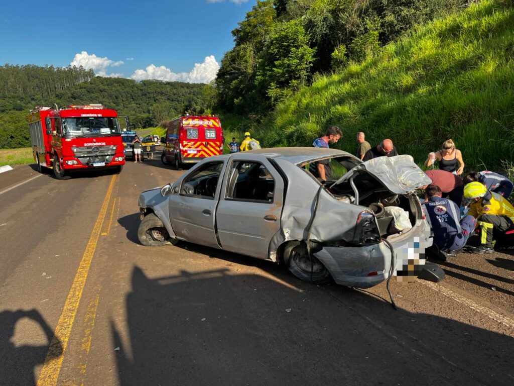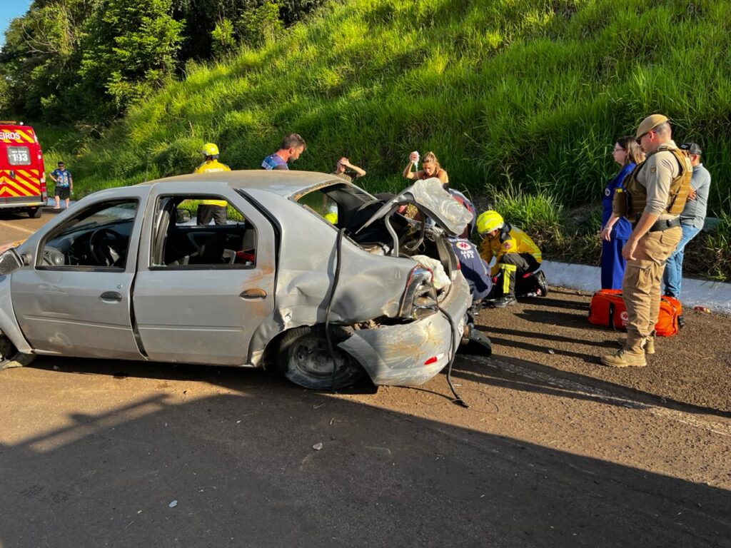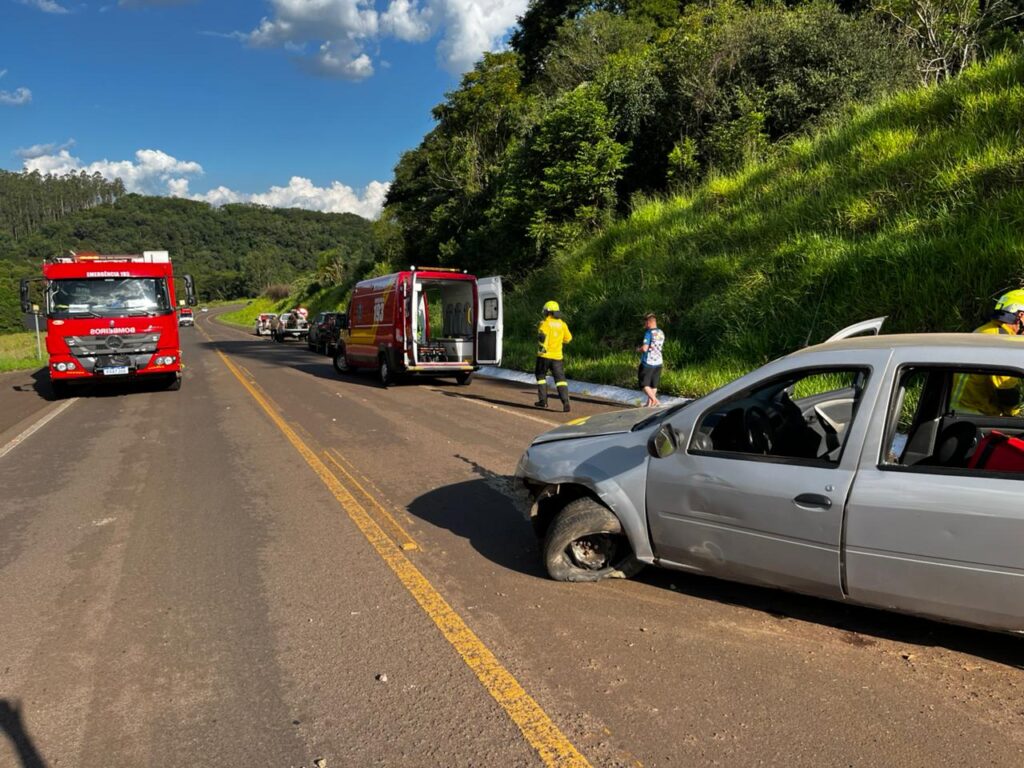 No veículo também estava um homem, que não apresentava ferimentos graves e foi conduzido pelos bombeiros para avaliação médica.