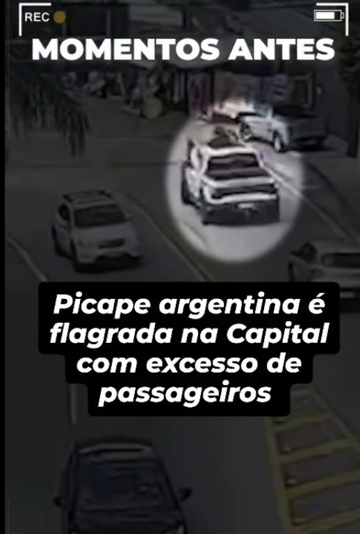 Momentos antes da abordagem, a picape também foi visualizada por câmeras de monitoramento com passageiros parcialmente para fora do teto solar. Durante o patrulhamento, os policiais foram alertados por um motociclista que havia presenciado a irregularidade e informou que o veículo representava perigo.